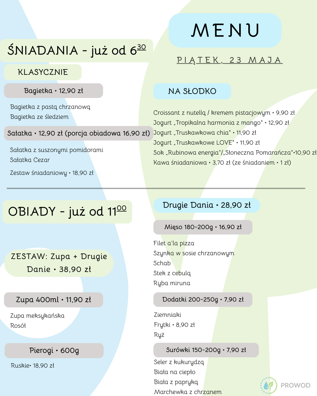 Menu na Piątek 23 Maja 2025 r.