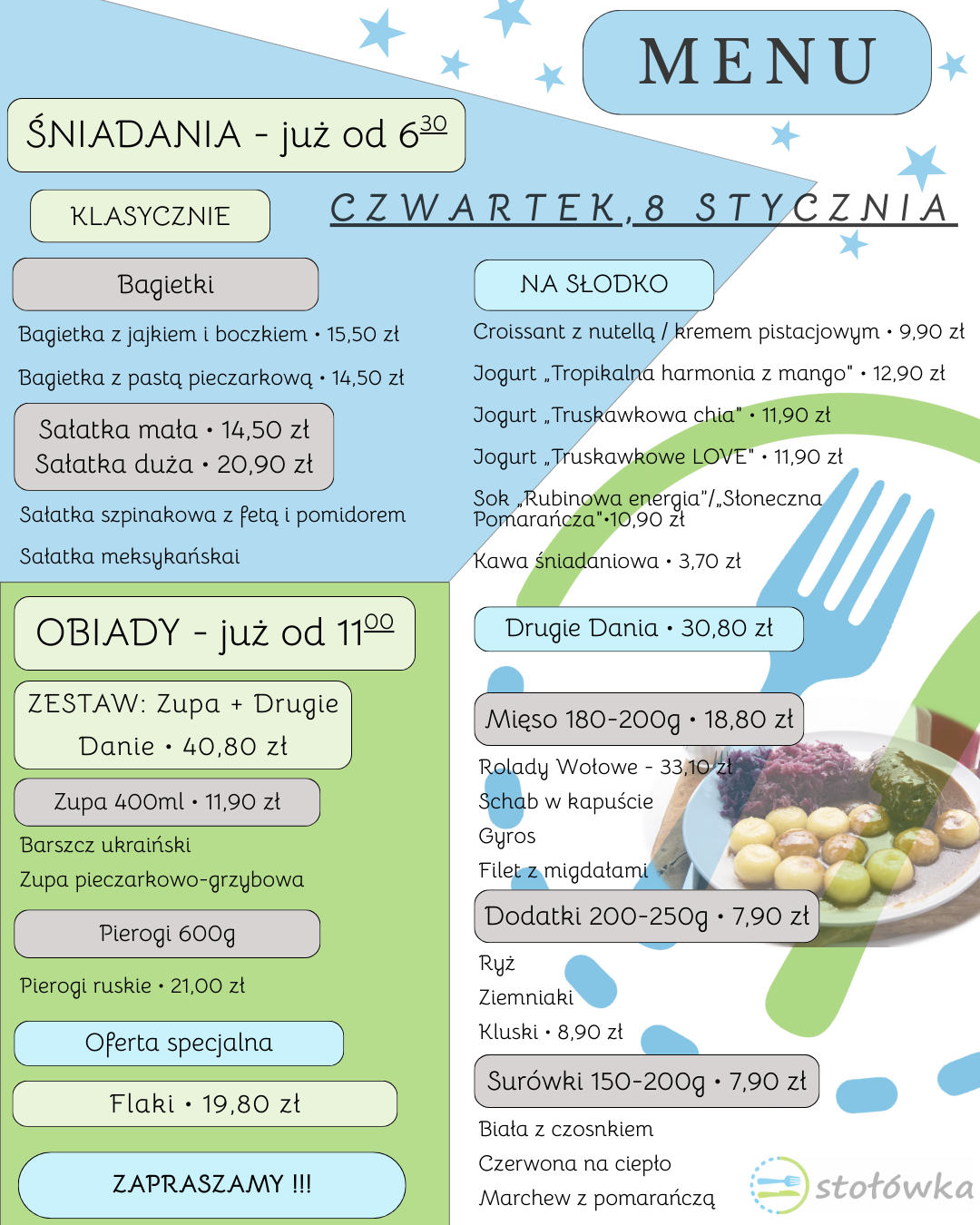 Menu na Czwartek 8 stycznia 2026 r.