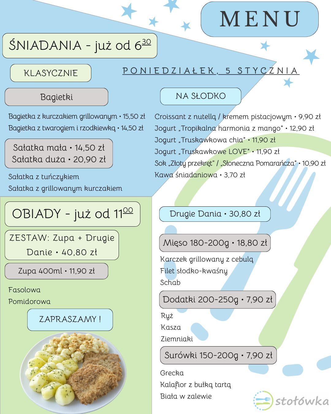 Menu na Poniedziałek 5 stycznia 2026 r.